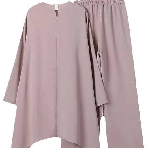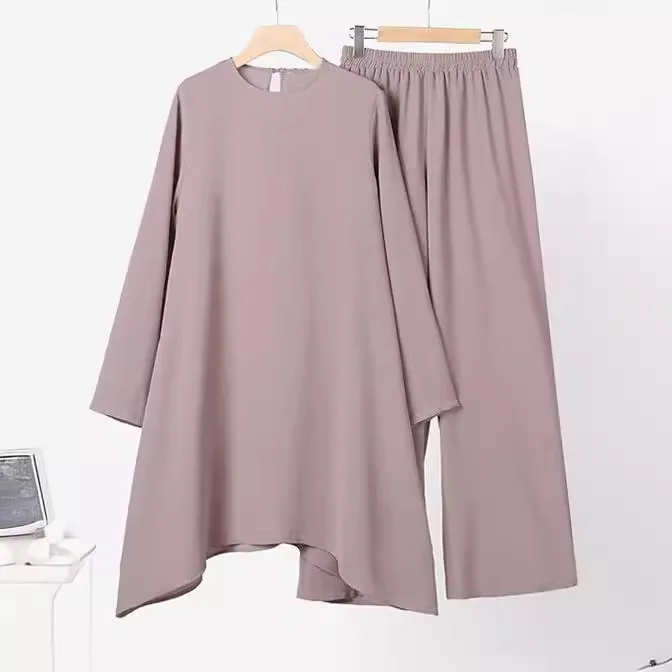 Muslim Women's Casual Fashion Winter Suit Polyester Crewneck Pullover Dress & Trousers Cross-Border Two-piece Dress Sets